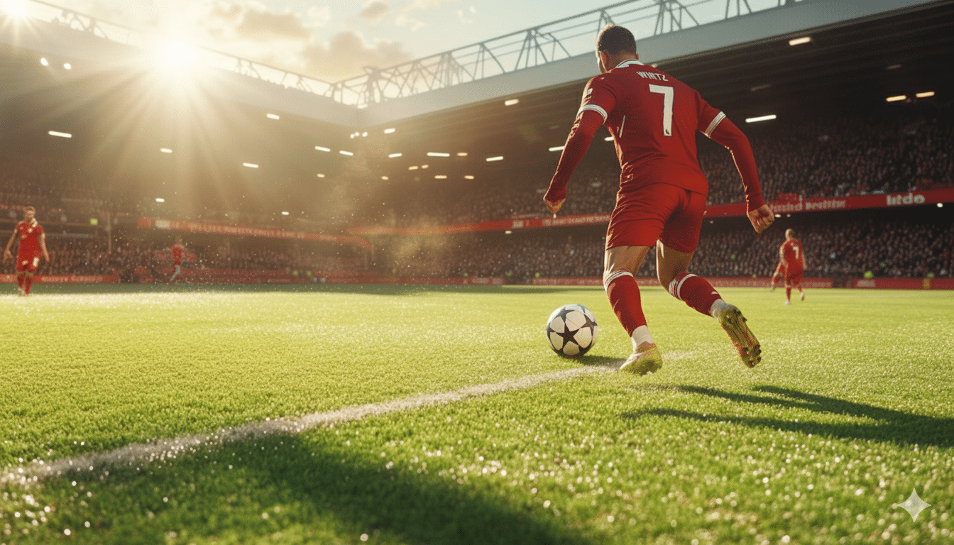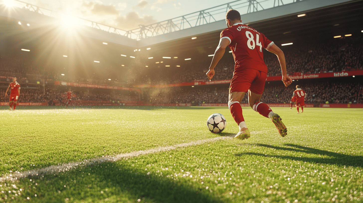 Prompt: Change the name at the back to Wirtz, the number to 7, make it the 2025 long sleeve adidas home jersey, player likeness to Florian Wirtz, three strips down the shirt and pants and improve the proportions of the players to be more realistic