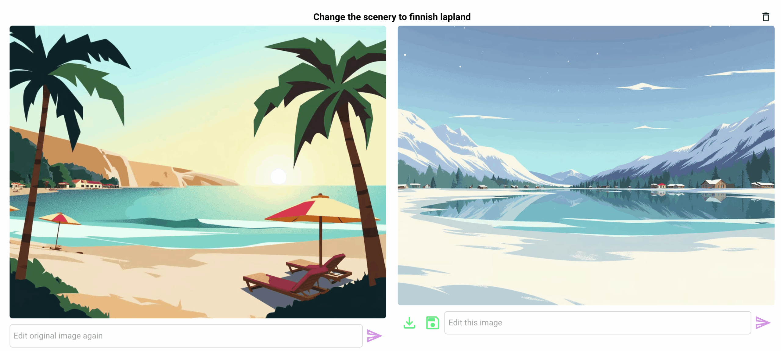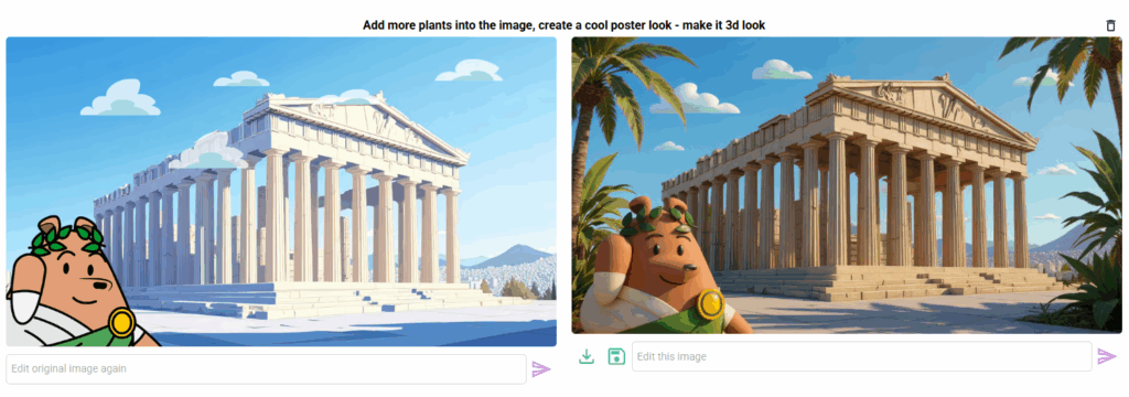 • Combine edits creatively: change backgrounds, then add or remove objects, then adjust colour or style.